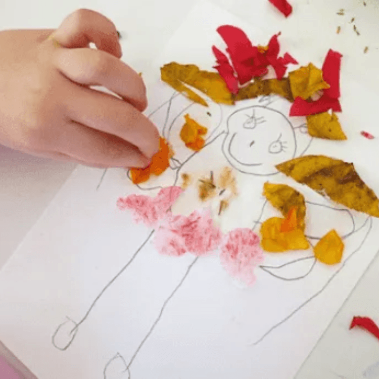 Freakish as it may sound, trust us because you are going to love what you and your child are about to create. Take a full-length photo of you and your child, remember the photo should not cut you or the child anywhere. After this, walk into the nearby garden with your child and gather materials like leaves (dried or fresh), flowers, twigs, etc. Not only from the garden you can collect materials from your household too. Material like old clothes, colours and much more.