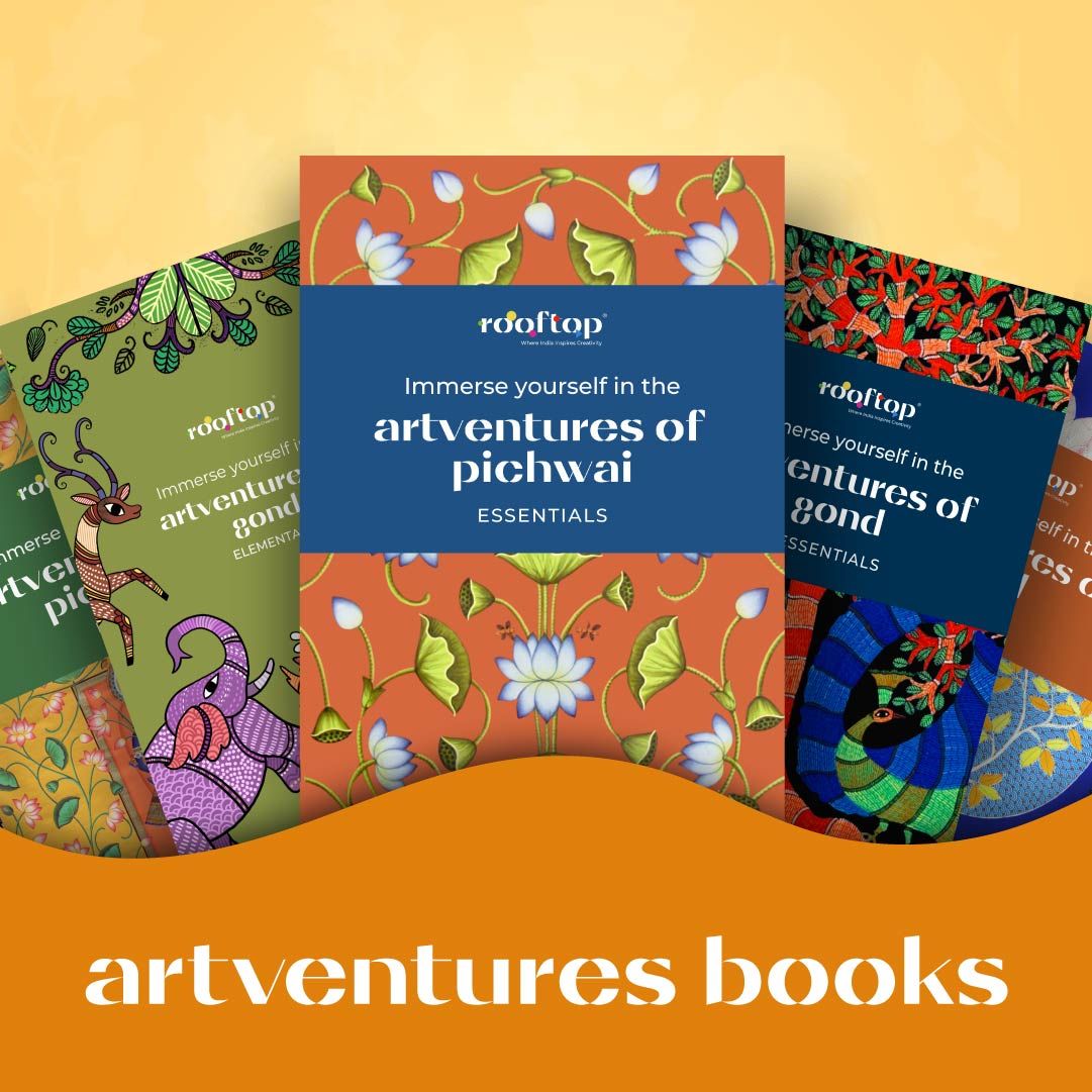 For someone who wants to learn Indian art, Rooftop’s carefully crafted, illustrated DIY books are perfect to bring the magic of Indian art to your fingertips. Each book is a journey into one of India’s traditional art forms, that helps you learn and love the art through stories, anecdotes, step-by-step instructions, practice pages, tips, tricks and more! Whether you're a curious beginner, a young learner, a teacher, or simply someone looking to explore the cultural roots of India—Artventure Books open a world of creativity, cultural connection, and self-expression. With 3 volumes on each art form, our Artventures Elementary, Essentials and Expert editions on Warli, Pichwai, Mata ni Pachedi, Gond, Cheriyal and Phad art are more than just educational reads. These books are created in collaboration with master artists of each Indian art form to give you an authentic, hands-on experience of traditional Indian art.
