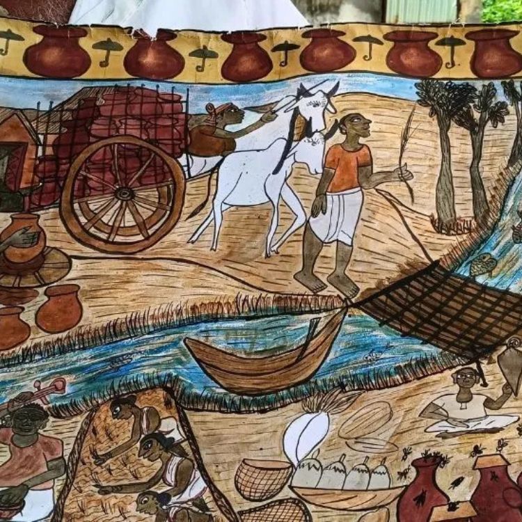 The different motifs and styles of Paitkar art serve as a visual representation of their customs, traditions and religious beliefs. Paitkar artworks are filled with mythological figures and deities, meant to invoke a feeling of protection and divinity. The community believes that by painting this dying art form during ceremonies, they would be blessed by Lord Shiva and Lord Durga from Hindu mythology.