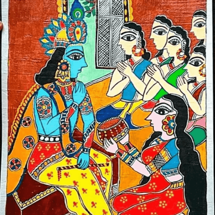 Food depictions in Indian art forms like Warli art, Madhubani, and Cheriyal as well as in Kalighat paintings often show women engaged in traditional kitchen activities (often reflecting contemporary depictions as well!)