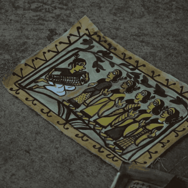 Jadopatia painting is a folk art form practised for centuries in Jharkhand, typically practised by the Santhal tribe, who create scrolls known as Jado or Jadopatia. These paintings were used to tell stories in the form of illustrations depicting scenes from the afterlife, fantasy worlds and legends about gods.