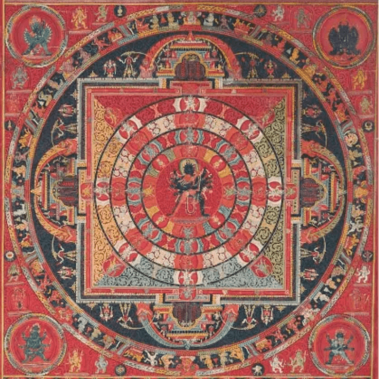 Buddhists and Hindus believe that by concentrating on the Mandala and directing one's focus towards its centre, individuals embark on a profound journey of cosmic transformation. This transformation is guided by the belief that suffering can be transmuted into joy and happiness through this spiritual practice.