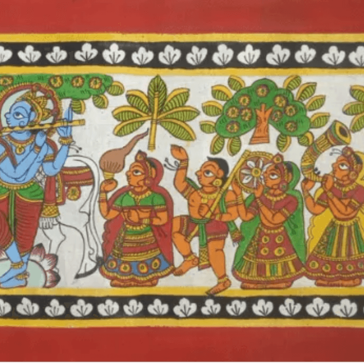 'Pattachitra' paintings originated in Odisha and are one of the most famous of their kind. The word 'pattachitra' is derived from Sanskrit, where 'Patta' means canvas and 'Chitra' means picture. Bold lines from bamboo brushes and organic and naturally vibrant colours characterize this painting style.