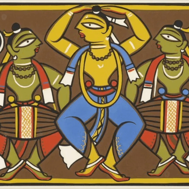 Did you know, artists who lived on the outskirts of Calcutta established Kalighat Painting? Around the year 1830, This painting's evolution was influenced by the artists' migration to Kalighat, which resulted in a distinctive development in their artwork. We were curious to know what the major themes of Kalighat paintings were, and we found out that, it's centred around religious figures and scenes from sacred scriptures, ranging from the deities like Lakshmi and Durga, and characters from the Hindu epic Ramayana, etc. However, after becoming politically established in India, the British started to express an interest in music, literature, and the arts. They created institutions where Indian artists would receive academic training in the European style.