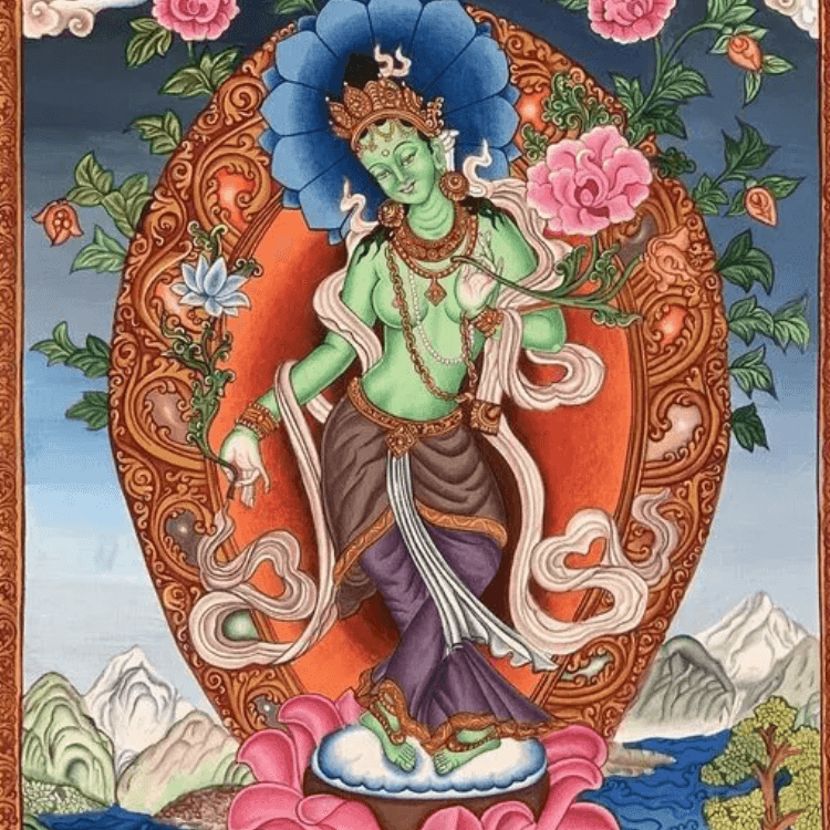 The painting style of Paubha is deeply etched with the cultural heritage of the Newari community in Kathmandu. This tradition is a testament to the legacy of the historic cities of Patan, Bhaktapur, and Kathmandu, as it still flourishes there. This art style reflects the spiritual teachings of both Hindu and Buddhist tradition. According to Vajrayana Buddhism, every being possesses inherent Buddhahood and can achieve enlightenment by overcoming ignorance and cultivating Bodhicitta, the awakened mind. Paubha art visually represents this path to enlightenment, guiding practitioners toward spiritual realization.