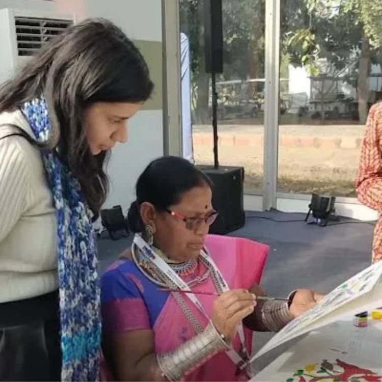 The Indian Art Biennale 2023 was a golden opportunity to bring Bhil art into the limelight by none other than the professional artist herself. An in-person art workshop was held, wherein art lovers, and budding artists, got a chance to immerse themselves in the intricacies of the art form of Bhil. The participants interacted with Padma Shri Bhuri Bai and got the expert’s feedback on their artwork. Not only the art but the heritage importance of Bhil art, choice of colours and process was also explained by the renowned artist.