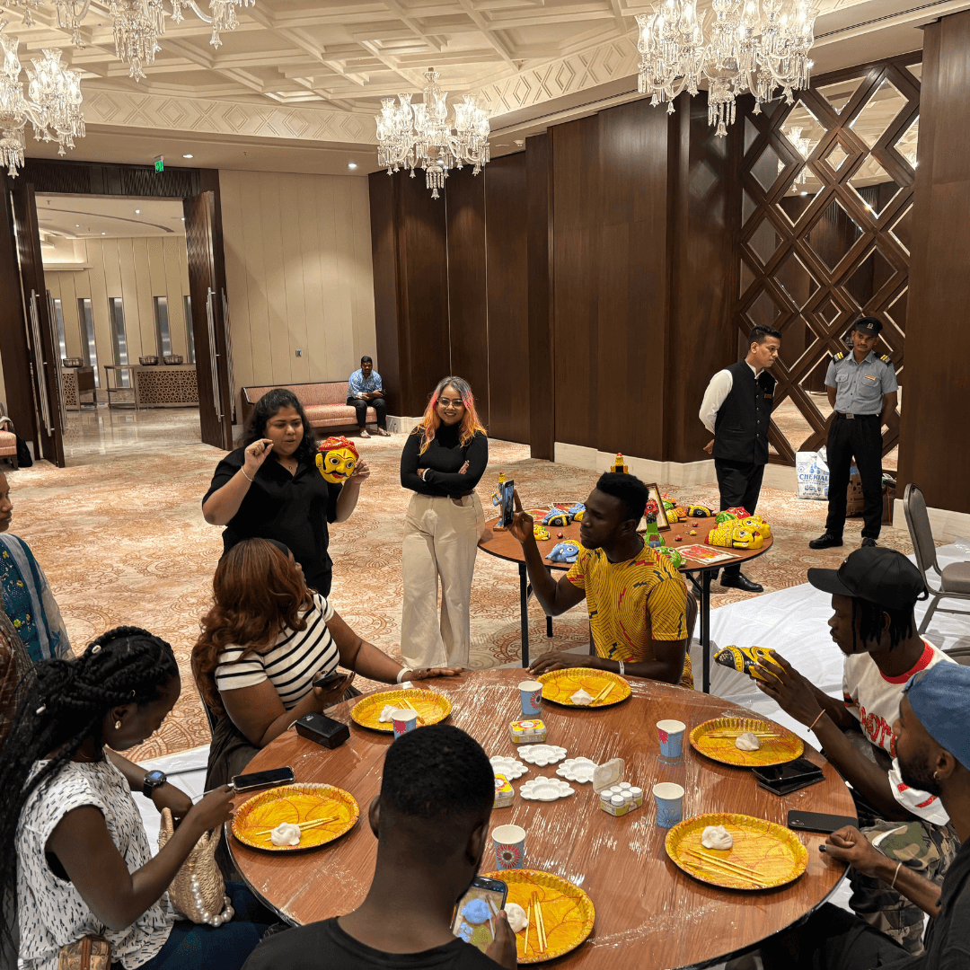 In the serene setting of The Leela, Hyderabad content creators explored traditional Indian Cheriyal mask painting art with expert artists Manga Pasula - an artist practicing this art for decades. It was a session filled with vibrant storytelling, where African creators discovered the layers of symbolism and tradition that define Indian visual culture. Many expressed how closely Indian art resonated with indigenous African expressions both rich in pattern, ritual, and heritage. They took home souvenirs of the mini Cheriyal masks that they handpainted themselves.