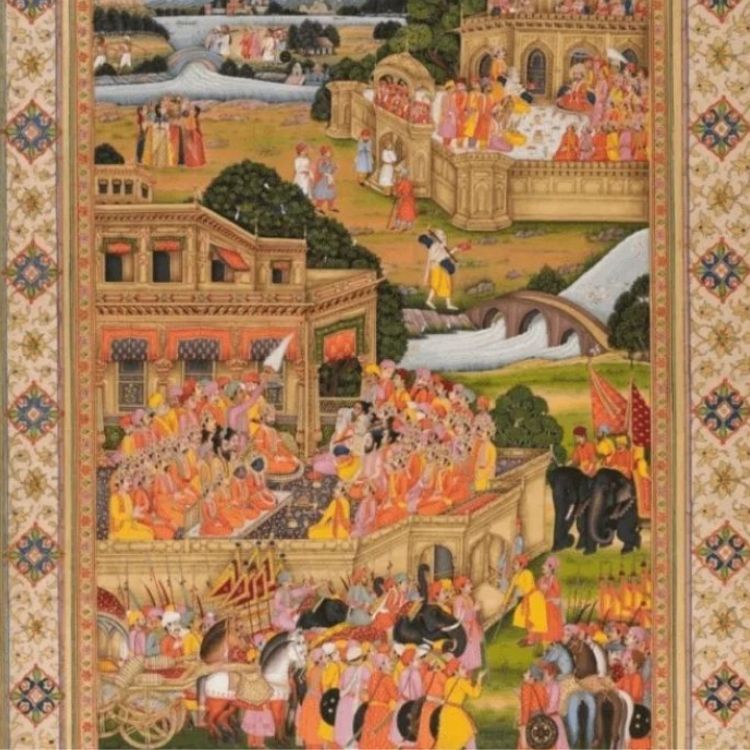 Raja Udit Narayan of Banaras commissioned this opulent masterpiece between 1796 and 1835. It comprises 1,100 folios adorned with 548 gold-drenched paintings and offers a unique perspective on cultural integration and socio-political manoeuvring.