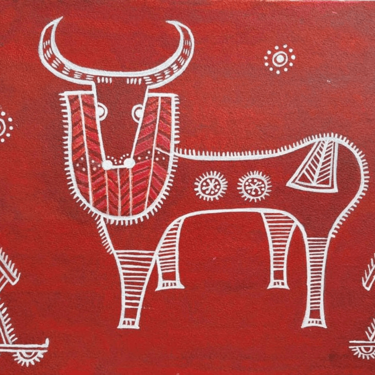 One of the most famous forms of tribal paintings in India is Warli art. This art form originated in the state of Maharashtra and is created by the Warli tribe. Warli art is characterised by its simple yet striking style, with images of humans, animals, and nature depicted using basic geometric shapes. The art is usually created using white paint on a brown background, giving it a rustic feel.