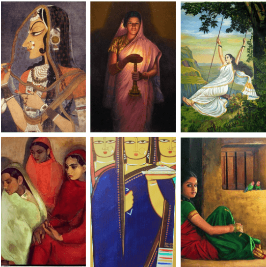 Now the artwork was an amalgamation of Western influence while the figures and motifs were used with an Indian perspective, against the backdrop of Indian sensibilities. Owing to the shift in the political status of India, the artists had larger depictions and new perspectives of women in Indian art.