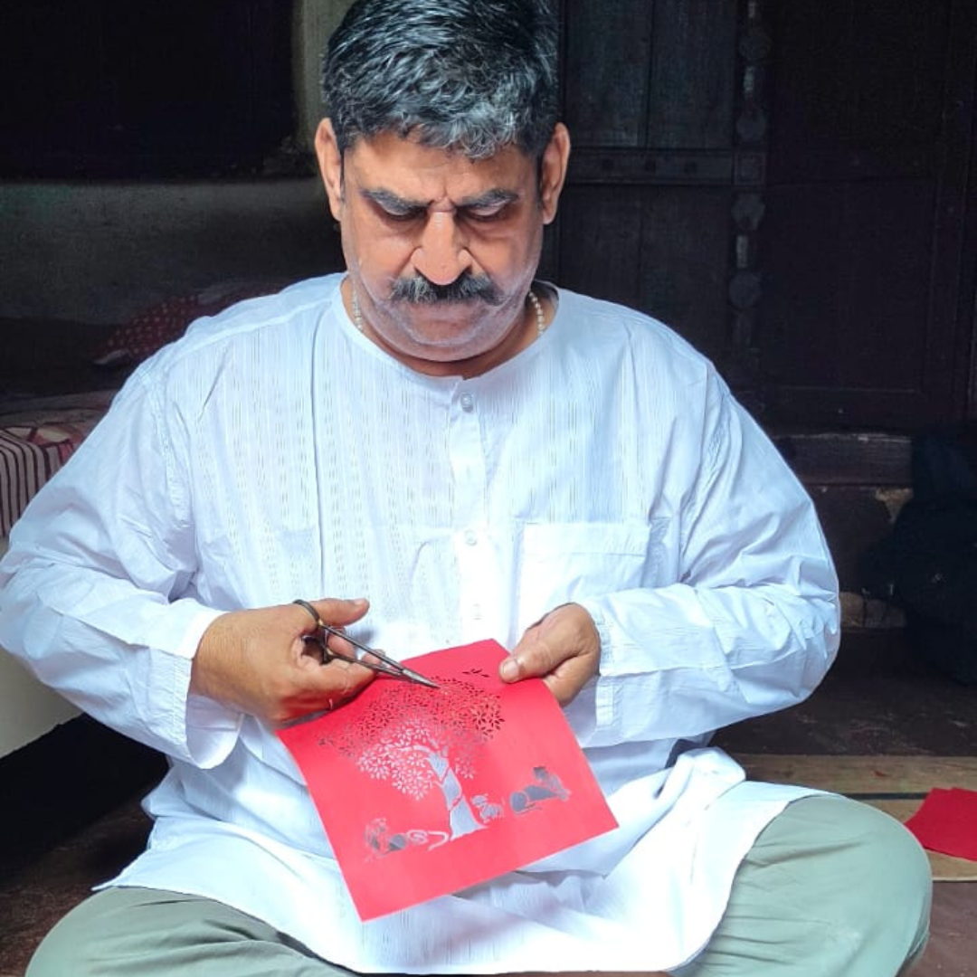 This experience opens into the world of Sanjhi, a craft where a single sheet of paper carries entire scenes through precise cuts. Inside the workspace of Shri Ram Soni the practice feels steady and focused. Patterns are first drawn with a quiet certainty. The blade moves slowly, lifting out shapes until the negative space becomes the artwork itself. The tradition is rooted in devotional imagery and temple rituals, yet its calm rhythm makes it feel timeless. A small Sanjhi motif is created during the session, guided by techniques that have travelled through Rajasthan for generations. The process is delicate and absorbing. By the end, the finished piece shows how something seemingly fragile can still hold remarkable clarity and detail. What It Covers: A clear introduction to Sanjhi paper cutting where designs emerge through controlled cutting and careful removal of shapes Guided practice in tracing and cutting motifs while learning how precision creates depth and pattern Insight into the devotional origins of Sanjhi art and its strong cultural presence in Rajasthan A closer look at the artist’s approach to handling tools, paper strength and fine detailing A take home paper cut artwork created using traditional Sanjhi methods