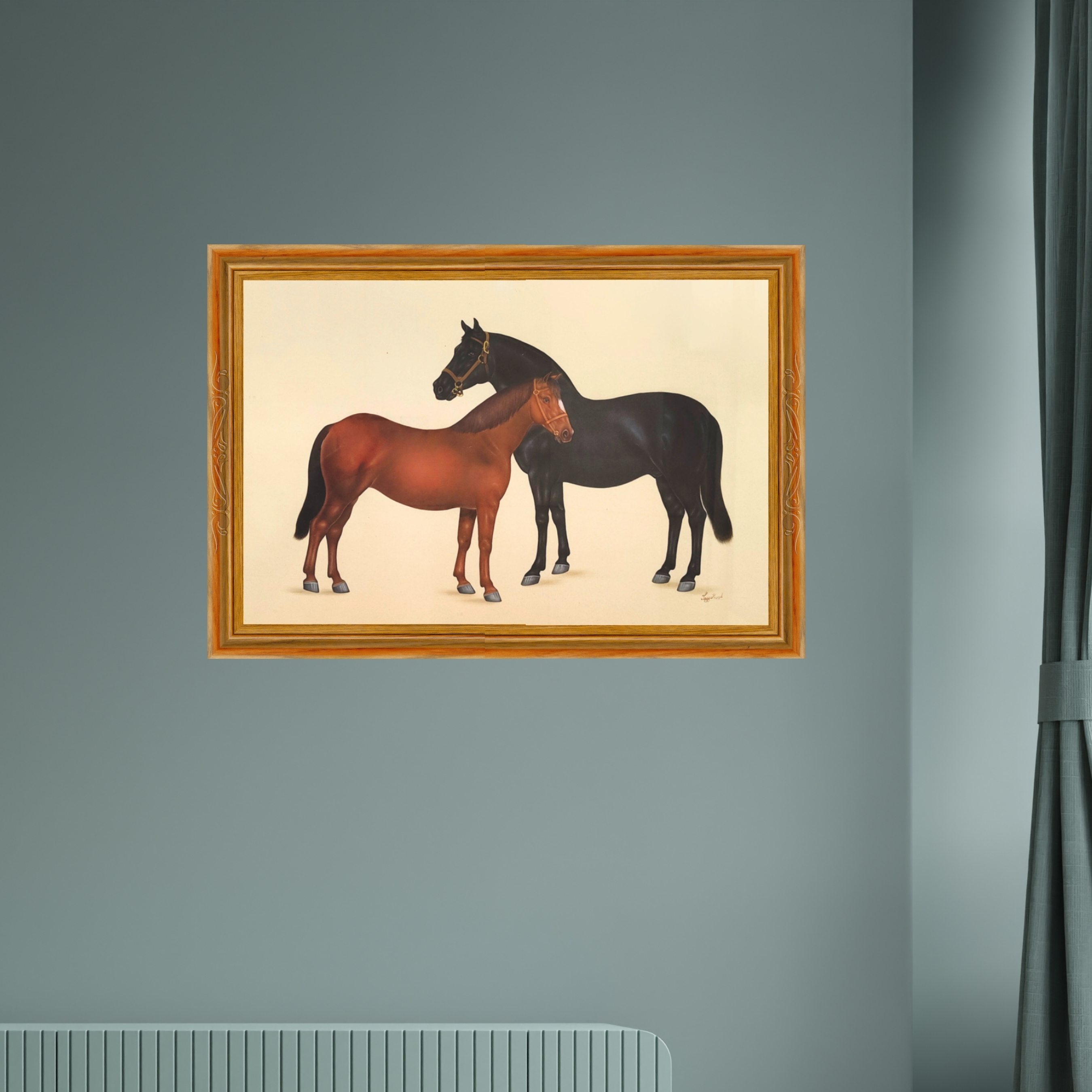 A dark walnut or muted gold frame enhances the tonal balance while maintaining a classic appeal.