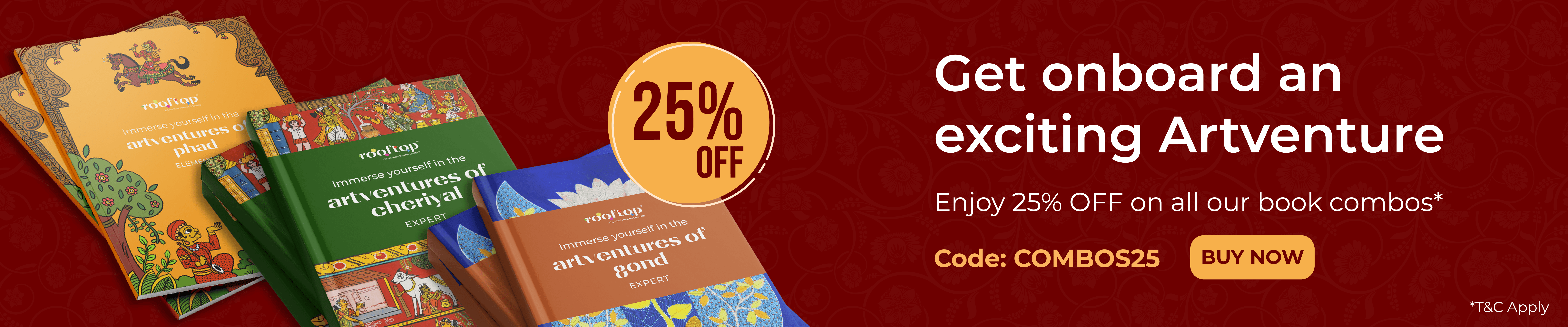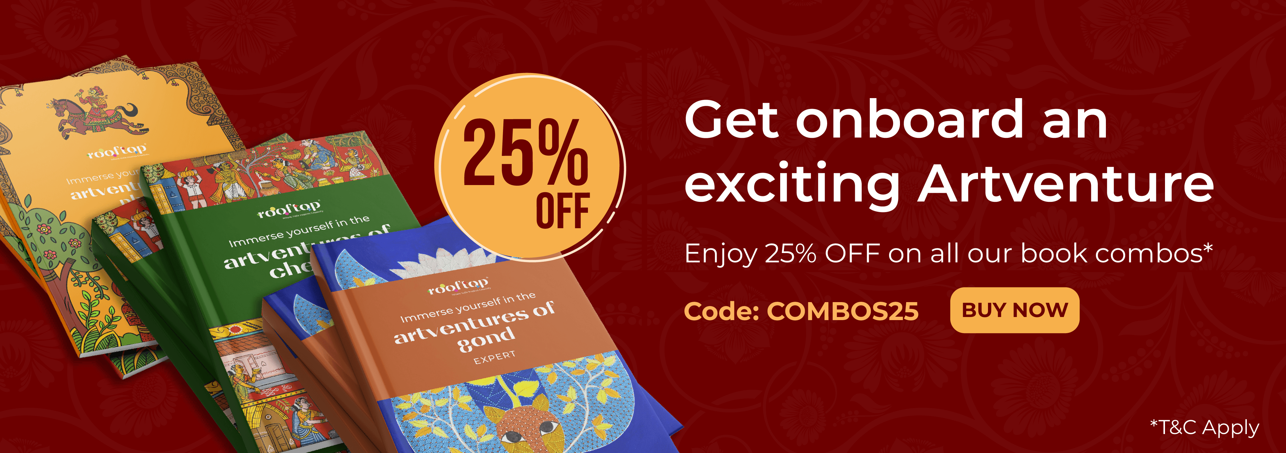 ## Explore Rooftop's Indian Art Combo’s ## Looking for a fun and meaningful way to learn Indian art? Rooftop's Indian Art Combo’s are the perfect choice for anyone who wants to dive into the world of folk and traditional art forms from across India. Each combo brings together beautiful Indian art styles in one combo, giving you double the learning, double the creativity, and double the fun. From the bold lines of Warli and the vibrant patterns of Gond to the scroll art traditions of Phad and Cheriyal, our Artventures combo helps you discover Indian art forms from elementary to expert level. Our combos also include interesting ones like - [SCroll Art of India combo featuring Phad and Cheriyal art Books](https://rooftopapp.com/shop/combo/scroll-arts-of-india-combo-of-2-books), the [Divine Arts of India Combo featuring Mata Ni Pachedi and Pichwai Art books](https://rooftopapp.com/shop/combo/devotional-arts-of-india-combo-of-2-books) and the [Tribal Arts combo with Warli and Gond art books](https://rooftopapp.com/shop/combo/tribal-arts-of-india) for all ages. Each combo is designed for beginners and art lovers alike, and includes everything you need to get started pre-printed outlines, traditional brushes, natural colours, and easy-to-follow guides. Whether you're exploring solo, with your kids, or looking for art gifts for a friend, our combo kits offer a unique chance to experience India's rich artistic heritage, hands-on. So kickstart your Indian art journey with our art combos and save big as you enjoy the world of [Indian art](https://rooftopapp.com/), one book, one combo and one Indian artform at a time!