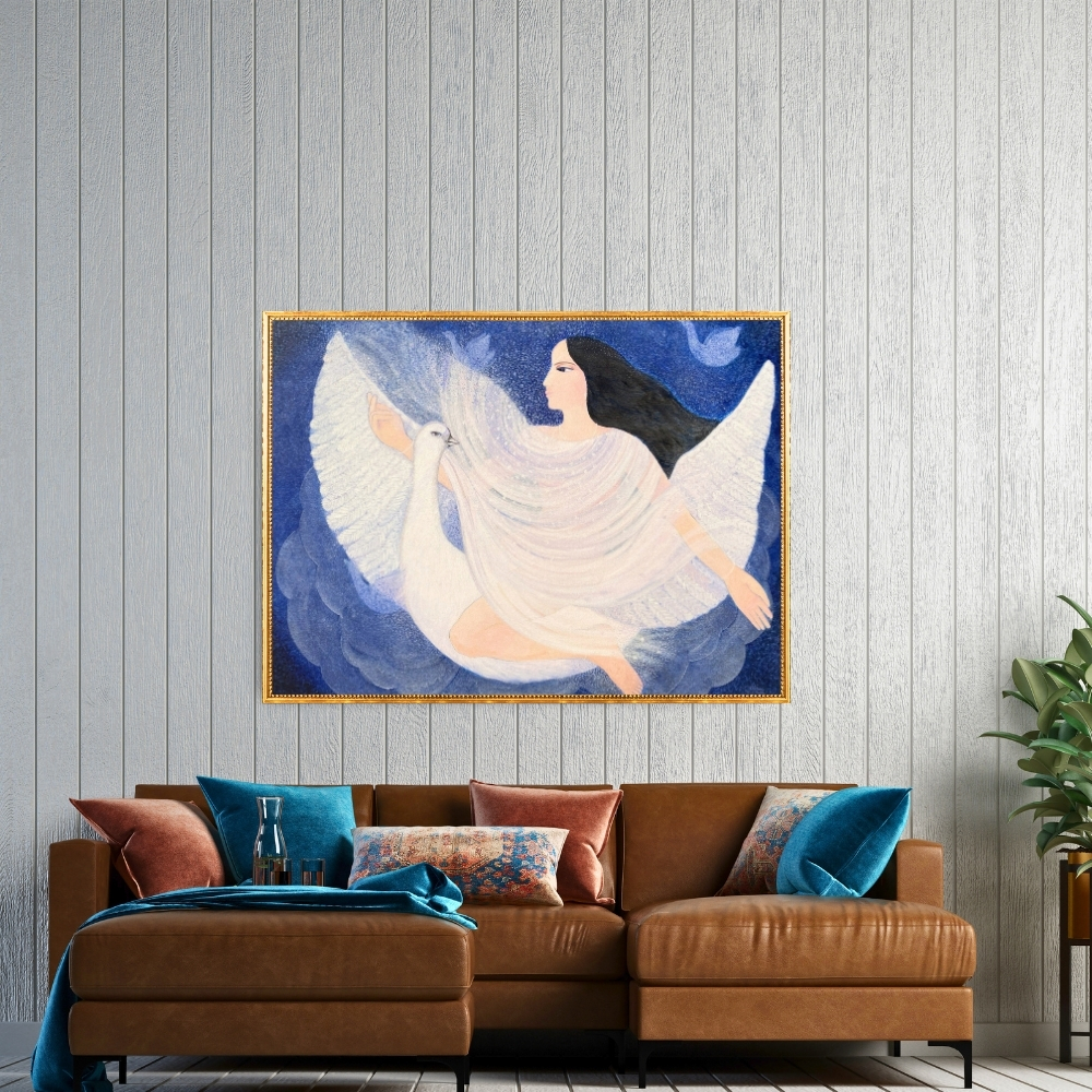 - The fusion of woman and bird evokes ancient myths of transcendence and freedom.