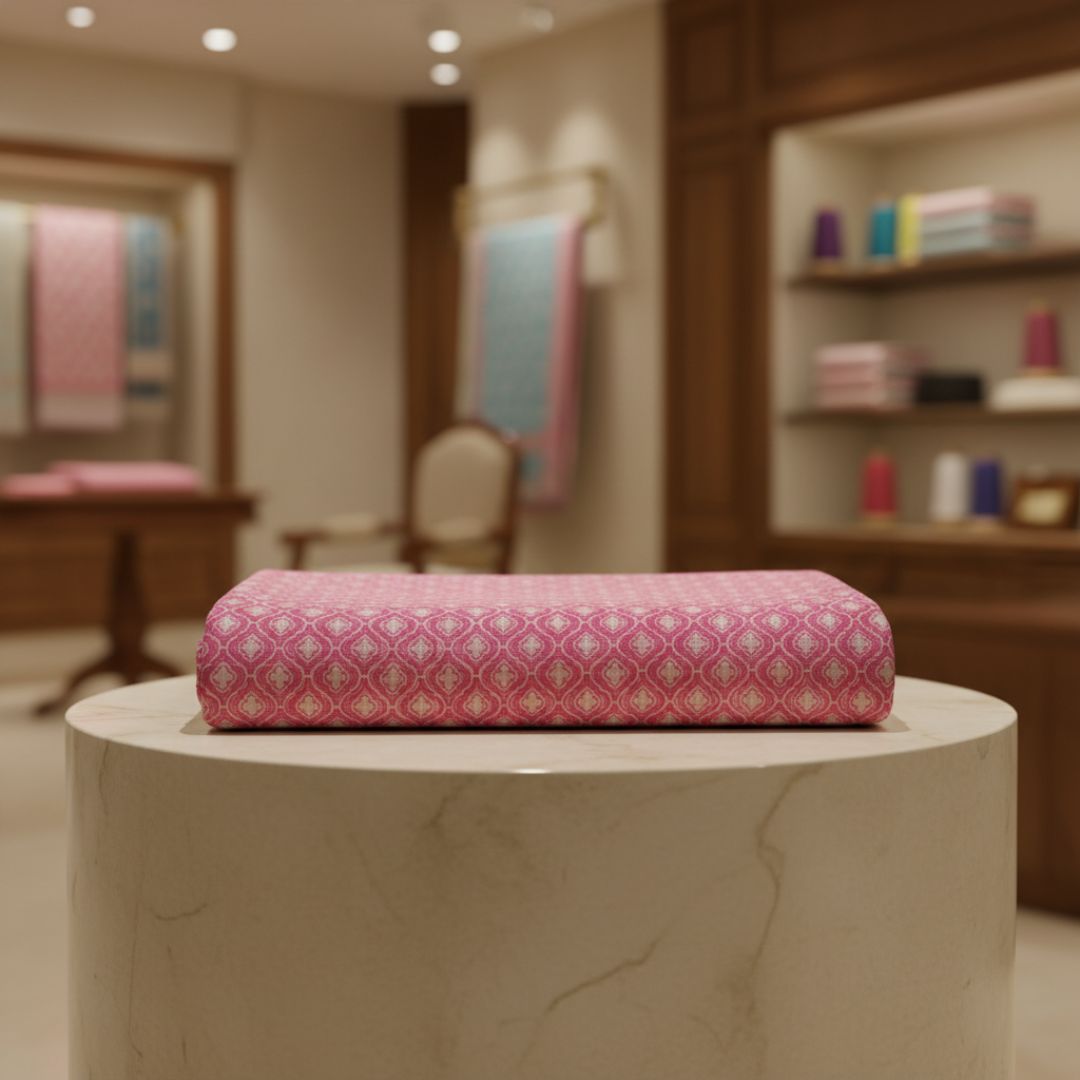 Mal cotton is especially valued for its lightness and comfort, making this fabric ideal for warm climates and everyday use. It drapes easily, feels soft against the skin, and allows airflow throughout the day. The single-sided print makes it well suited for garments, dupattas, stoles, scarves, and lightweight home linen projects where comfort, simplicity, and handcrafted detail are equally important. The soft pink tone adds a gentle, soothing presence that is easy to style across modern and traditional aesthetics.