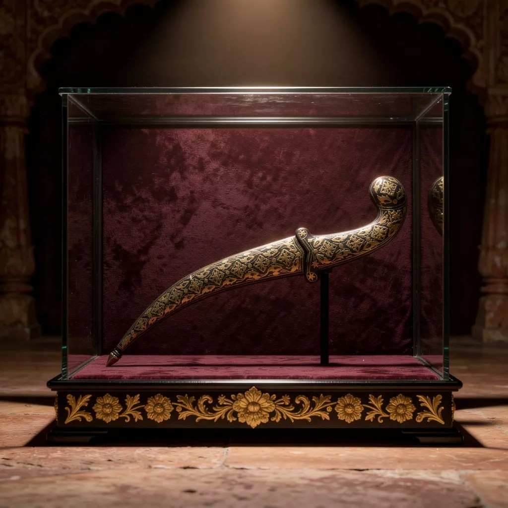 Created as a collectible art object, this dagger works beautifully as a display piece in curated interiors, study spaces, or heritage collections. Its smaller scale makes it easy to place on shelves, tables, or within glass displays, while the craftsmanship invites closer inspection. It reflects the quiet sophistication of Koftgari art, where detail, balance, and patience define the final form.