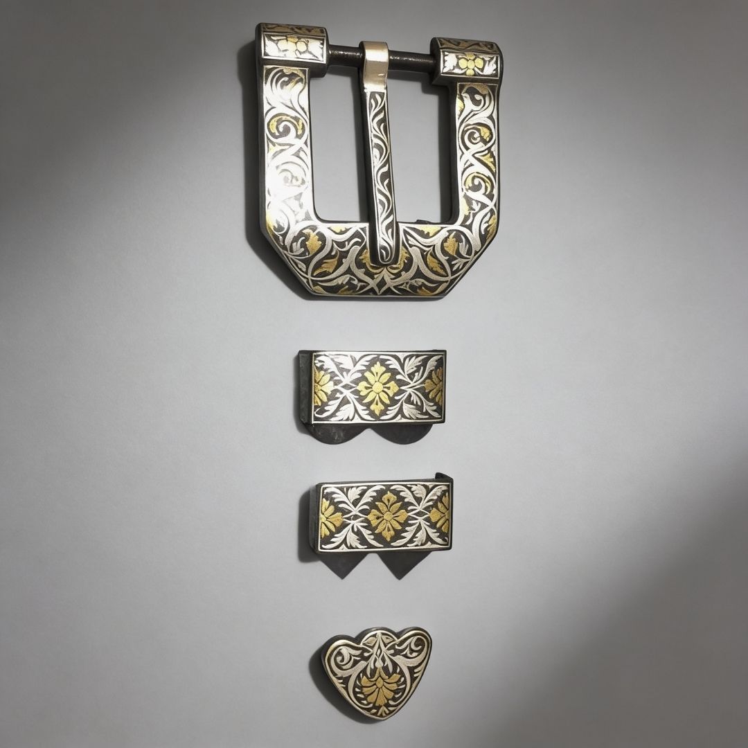 Decorative Koftgari Belt Buckle with Handcrafted Metal Inlay