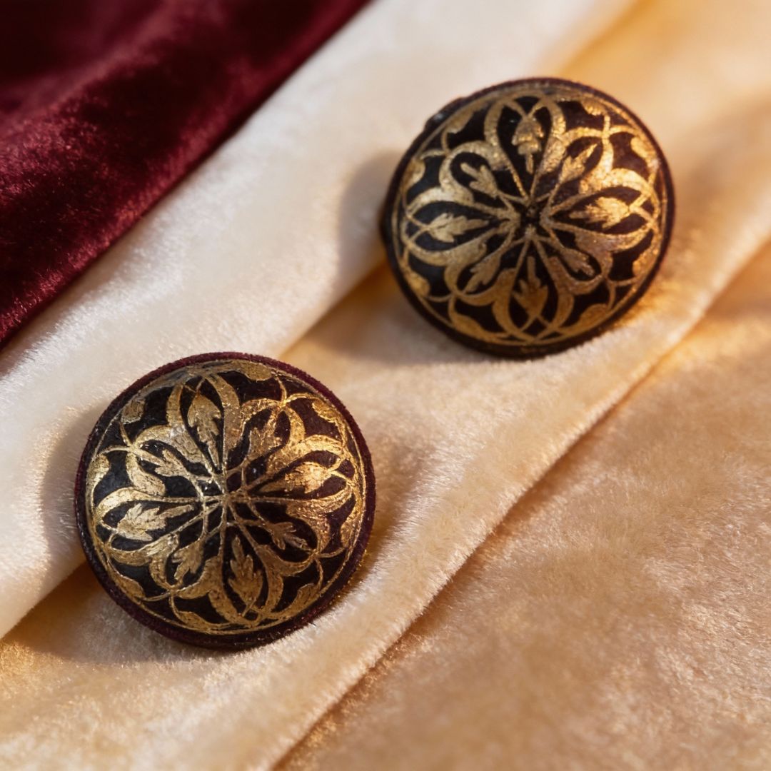Ideal for ceremonial attire, designer garments, and heritage fashion collections, this Koftgari gold button set appeals to tailors, designers, and collectors who value authentic handcrafted metal art. These buttons add sophistication, tradition, and elegance to any formal outfit.