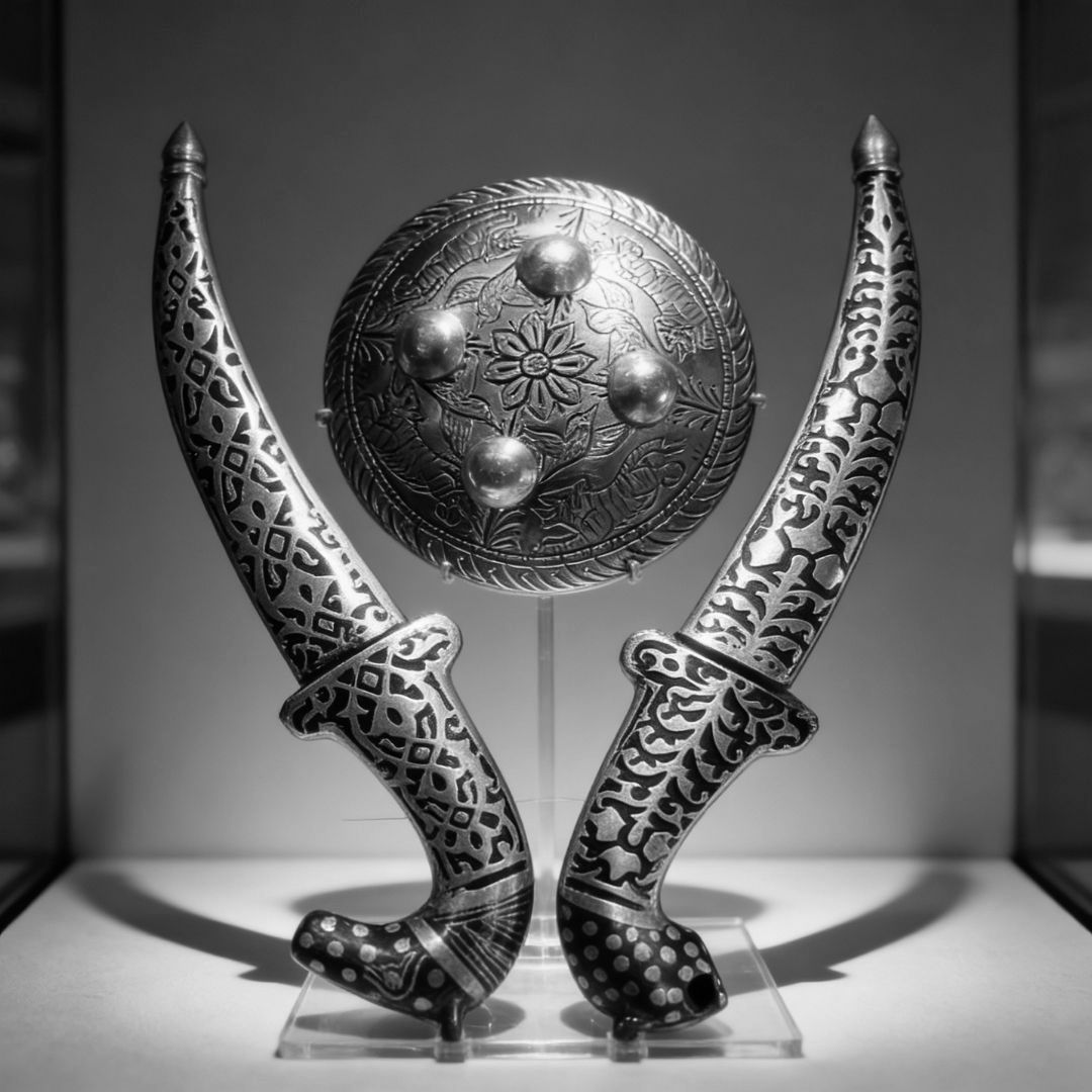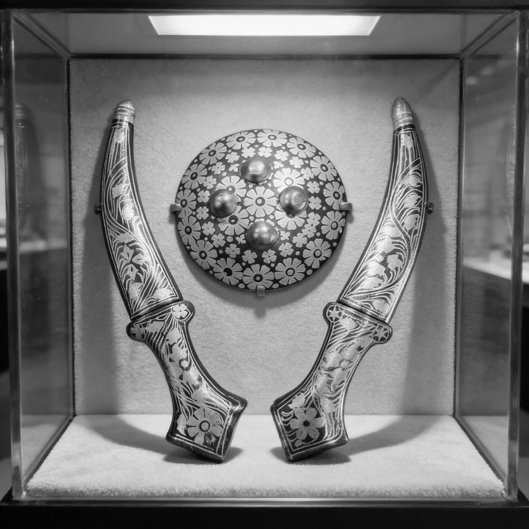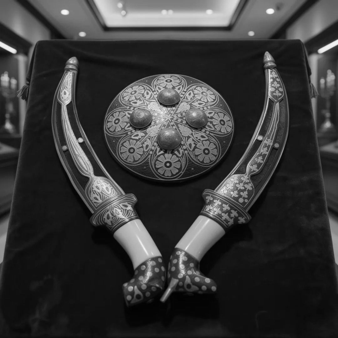 Shield Koftgari Decorative Dagger Pair Traditional Metal Art
