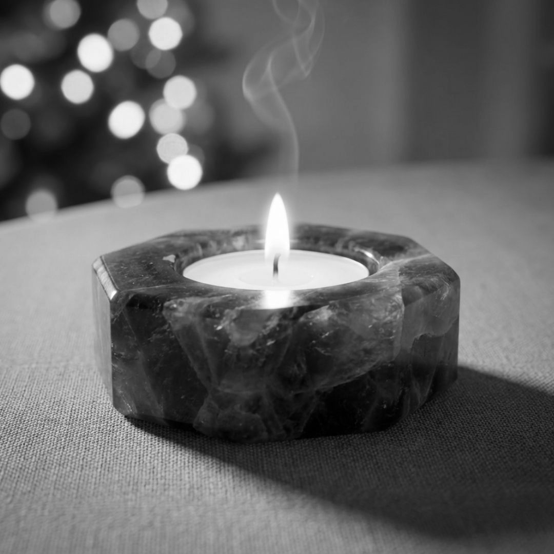 An amethyst tea light holder stands out because the stone naturally reflects soft purple tones that enhance any candlelight. The combination of crystal energy and handcrafted shaping gives it both visual appeal and a calming presence.