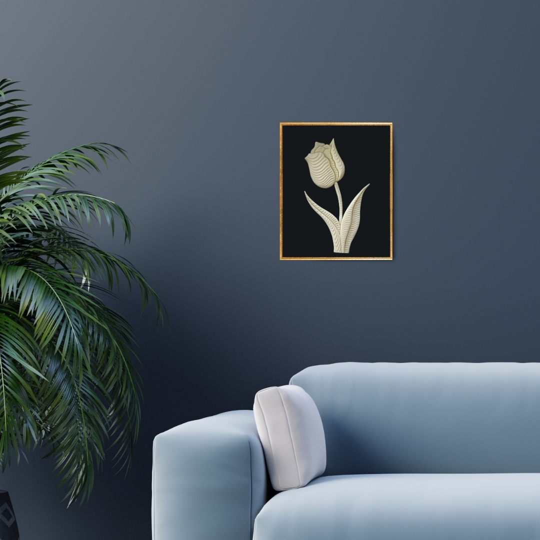 In Fresh Tulip, Chhajed captures the serenity of nature in pure form. The slender petals and gentle leaf curvature showcase restraint and elegance, making this a symbol of renewal and beauty. Using seafoam’s soft matte texture, the artist brings a lifelike delicacy to a minimal composition.