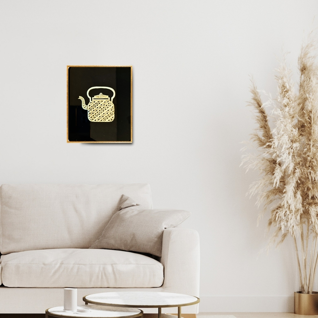 Harsh Chhajed’s Seafoam Kettle celebrates the beauty of everyday objects through meticulous craftsmanship. The piece transforms a simple teapot into a textured study of geometry and balance, emphasizing the ornate tradition of Indian decorative patterns. The latticework and dotted motifs are carved directly into the seafoam, giving it both lightness and intricacy. What could be an ordinary household item becomes a tribute to domestic warmth and artistry—a theme often found in Chhajed’s reinterpretations of functional forms.