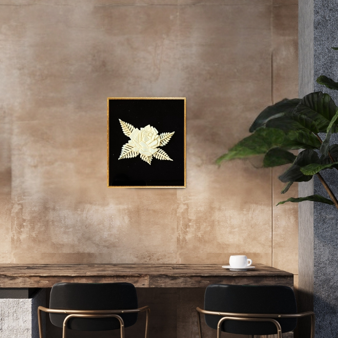 This seafoam rose features five delicately carved leaves that complement the flower’s layered form. Chhajed’s attention to symmetry and balance mirrors nature’s own design logic. The rose, carved in restrained curves, represents timeless elegance and affection.