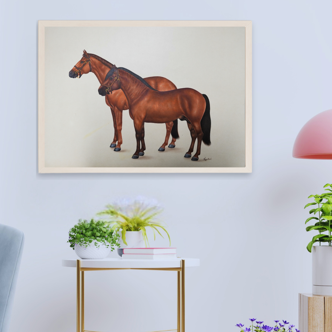The painting radiates stillness and dignity. With its fine detailing and warm tones, it celebrates the enduring relationship between human discipline and equine elegance, making it a timeless addition to any collector’s space.