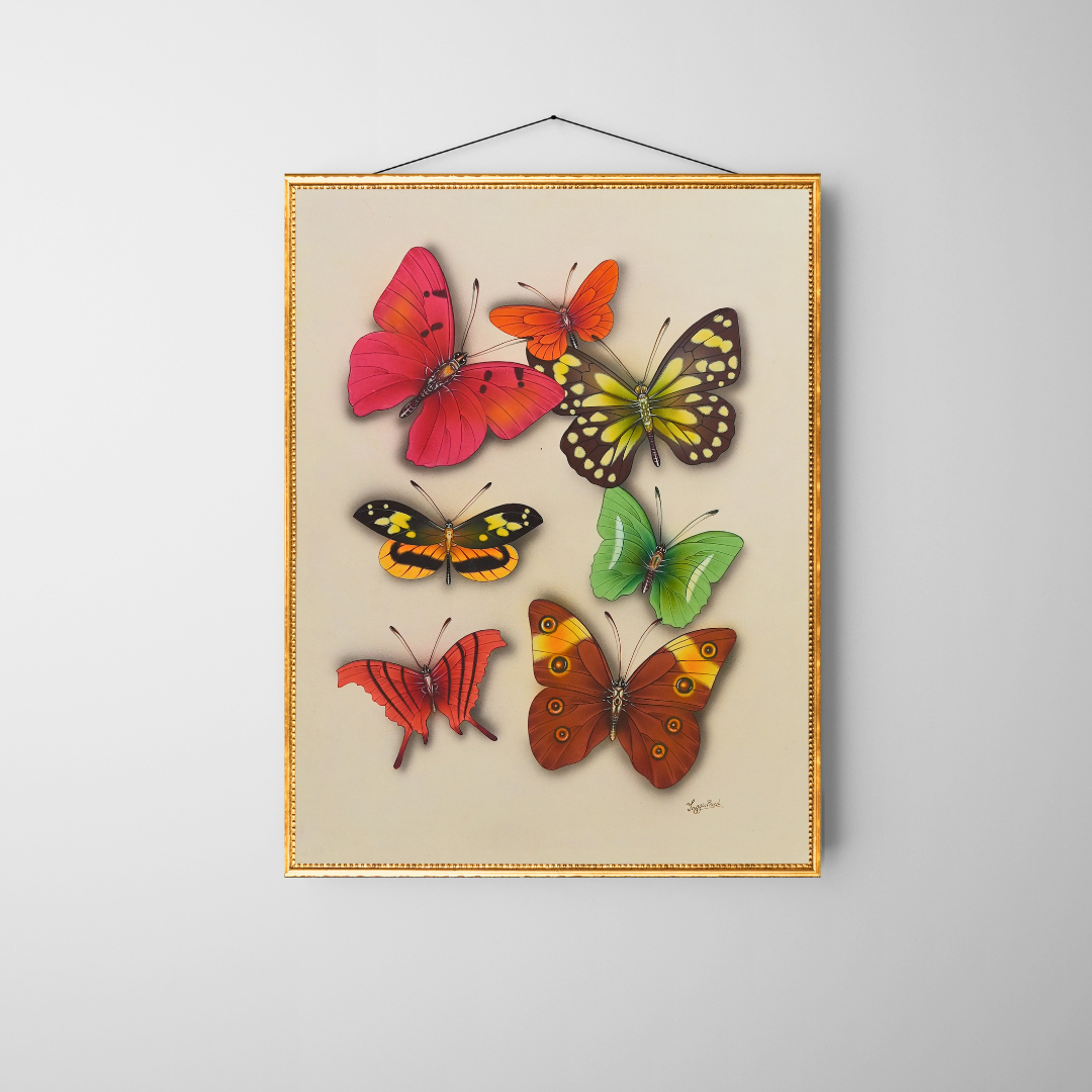 Prasad’s mastery of miniature painting is evident in his delicate brushwork and seamless blending of hues. The translucence of the wings and the refined play of shadow give the composition a lifelike energy. Every butterfly appears poised in gentle flight, offering a sense of renewal and harmony.