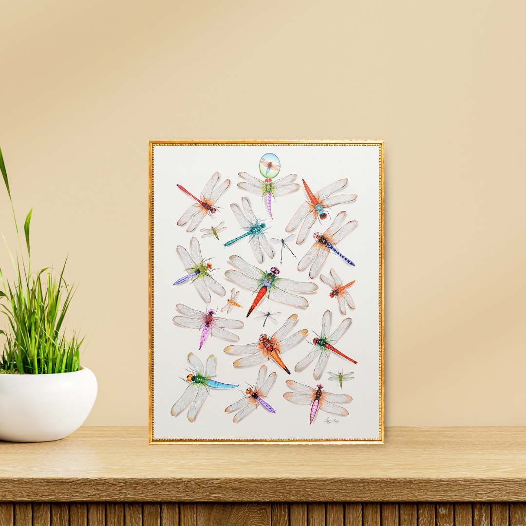 This intricate 18x24 inch artwork hand-painted with water colours on paper is perfect for collectors fascinated by detail, lovers of entomological art, and those who appreciate works that celebrate nature’s craft with jewel-like precision.