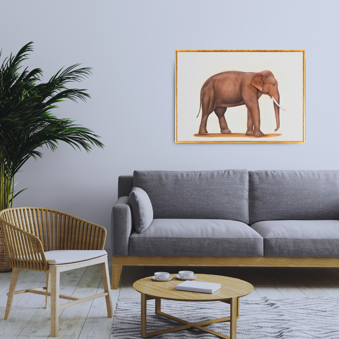 The muted palette and delicate composition reflect Jaggu Prasad’s mastery in transforming nature’s grandeur into serene visual poetry. This miniature painting celebrates the elephant not only as a majestic being but as a timeless emblem of harmony and power.