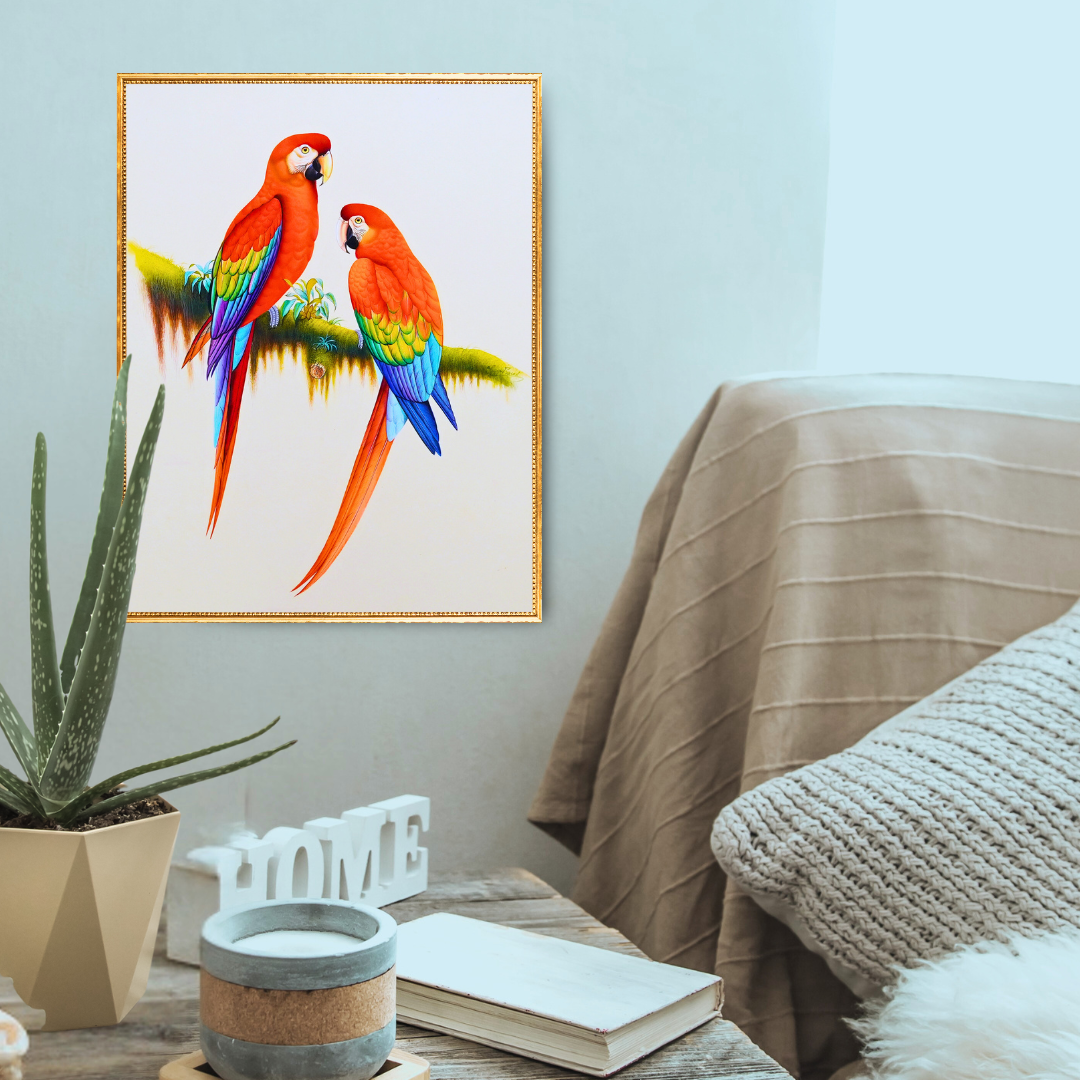 This delightful 13X17 inch artwork, hand-painted with water colours on paper, is perfect for nature lovers, birdwatchers, and all who love a touch of flora and fauna in their interiors.