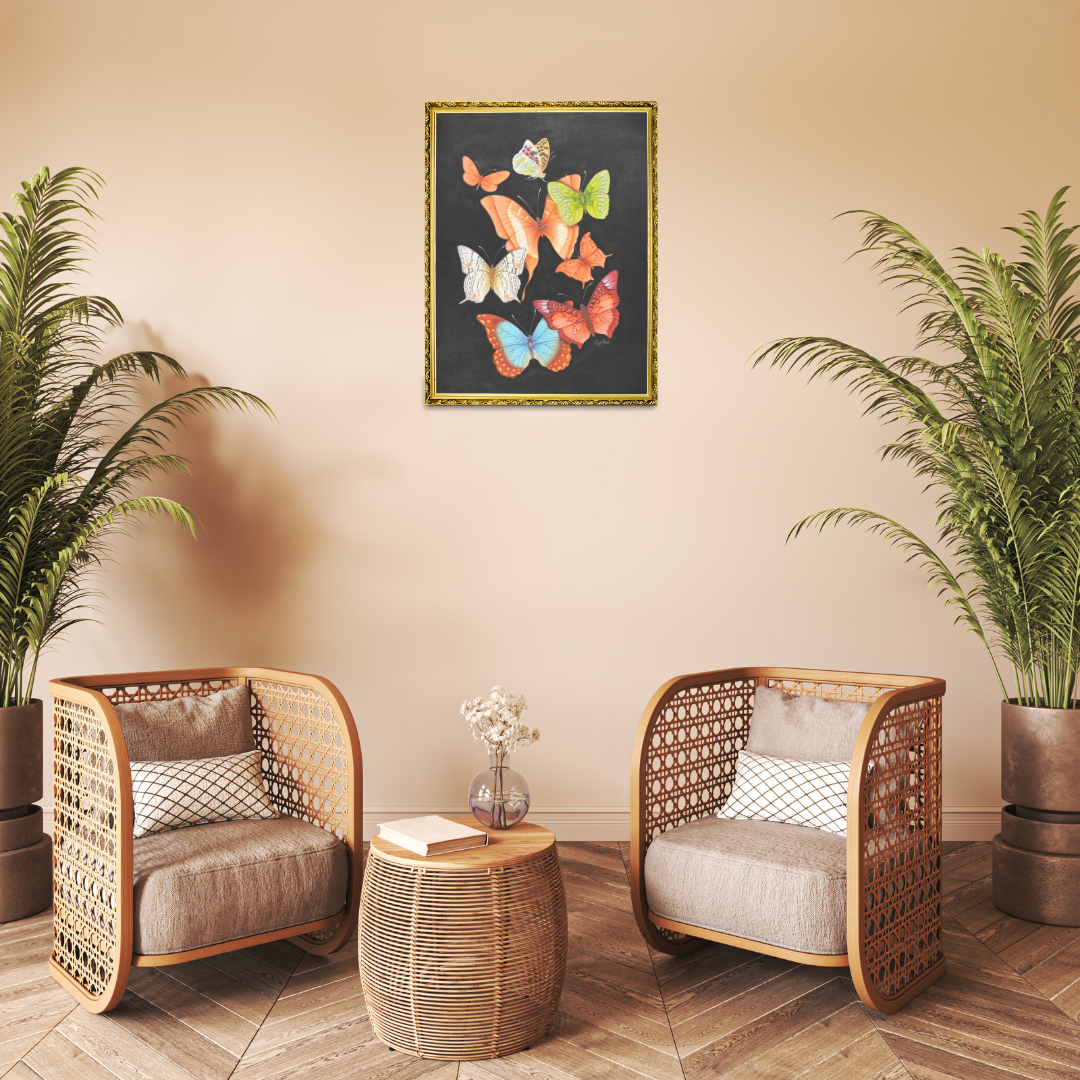 The artist’s mastery of miniature art is evident in the delicate precision of every wing pattern and the seamless transitions of colour. The soft gradients and vivid contrasts highlight the beauty of nature in motion, making this piece a vibrant addition to any art collection.