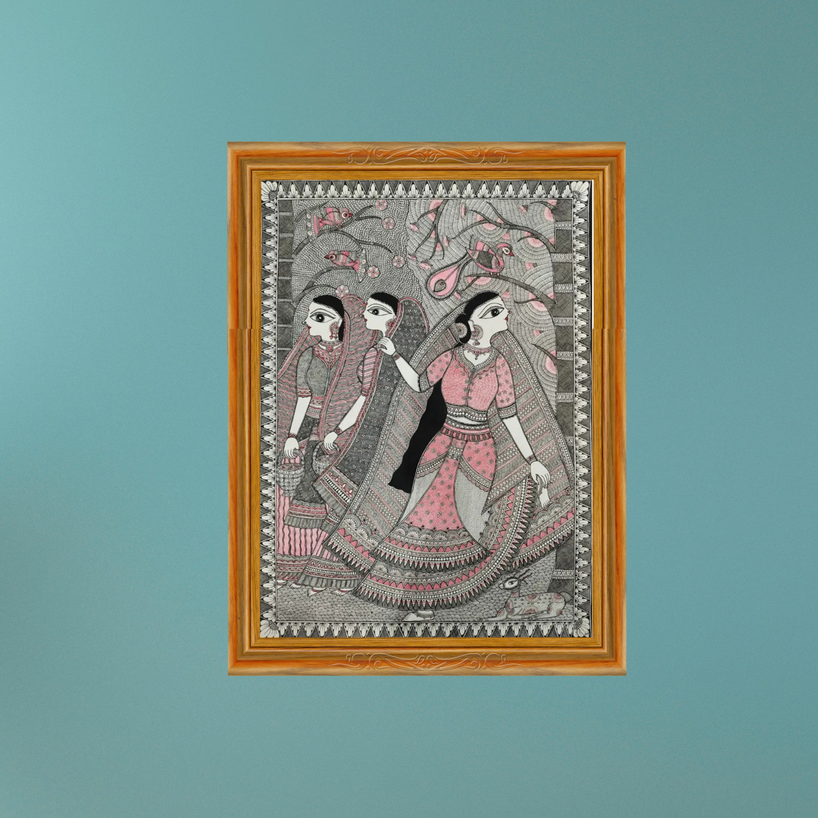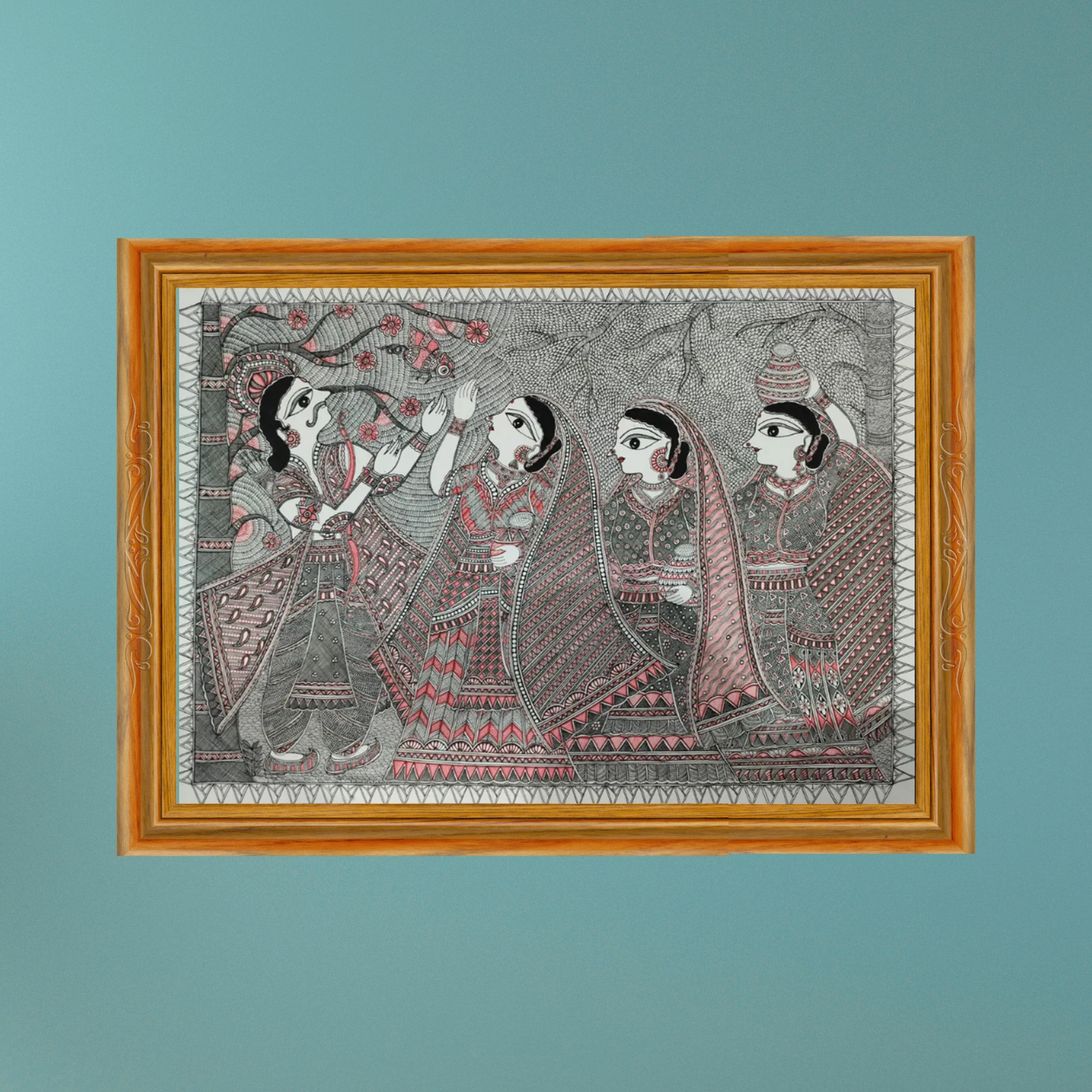 This beautiful Madhubani painting titled “Love at First Sight” captures a timele...