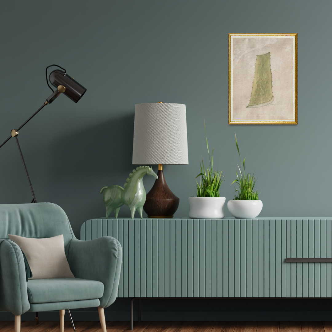 Aloe Leaf Study is as straightforward as it gets… but that’s exactly why it works. Mahaveer Swami takes a single aloe segment and treats it like a character, not just a plant slice. The soft greens shift gently from top to bottom, giving the leaf a lived-in texture… almost like you can feel the cool gel beneath the surface.