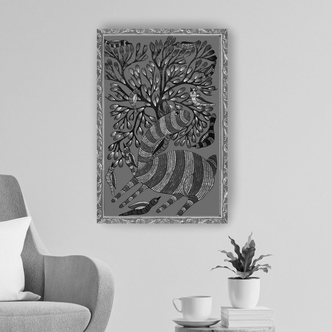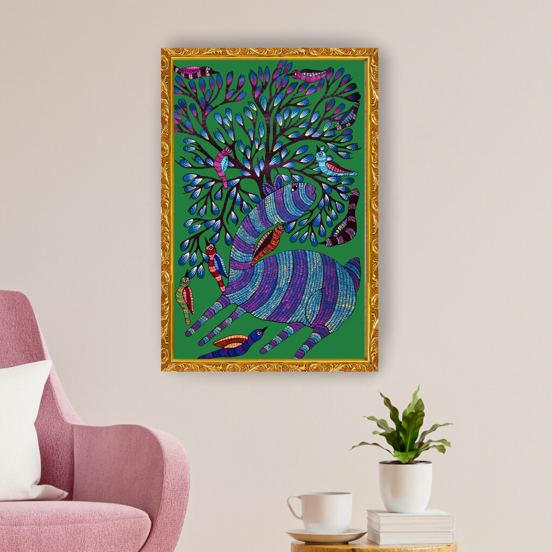 Bring this celebration of harmony and artistry into your home as a reminder of nature’s beauty and the timeless wisdom of Gond storytelling.