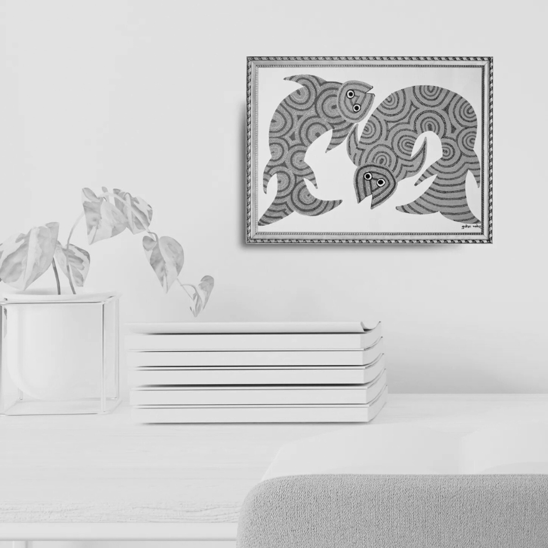 Intricate Dot Patterns & Rhythmic Flow – The fish are adorned with meticulously hand-painted dotted motifs, a hallmark of Bhil artistry, creating a sense of motion and life.