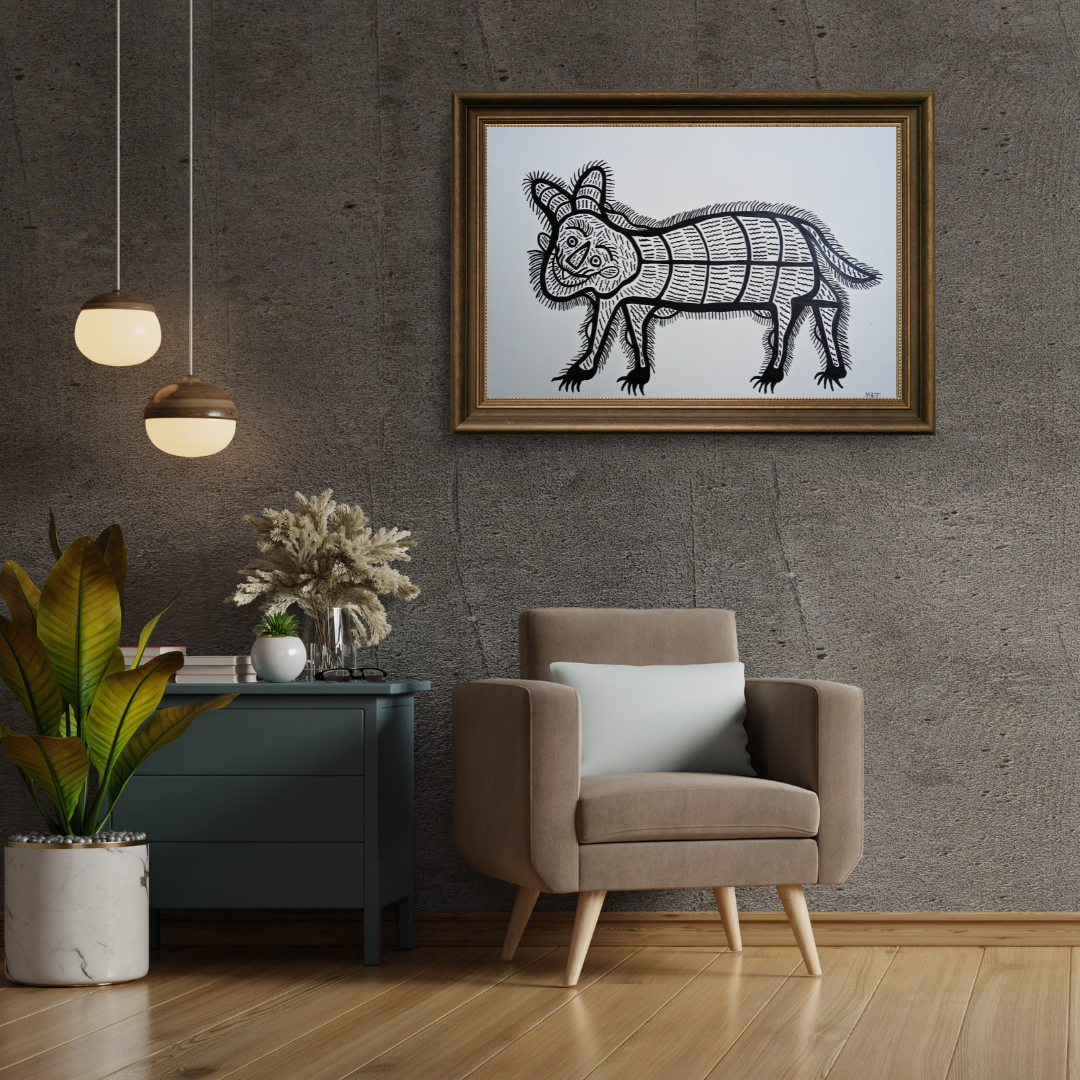 Baiga paintings are usually unframed but can be framed for display and protection if desired.