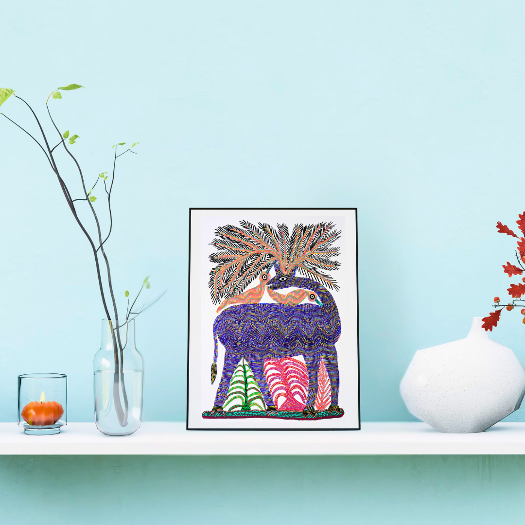 The vertical compact size of this composition makes it ideal to add to any minimalist or contemporary spaces. A perfect addition to gallery wall clusters, at homes, office lobby, studio spaces or cultural centres, An ideal gift for tribal art lovers, wildlife lovers or cultural enthusiasts.