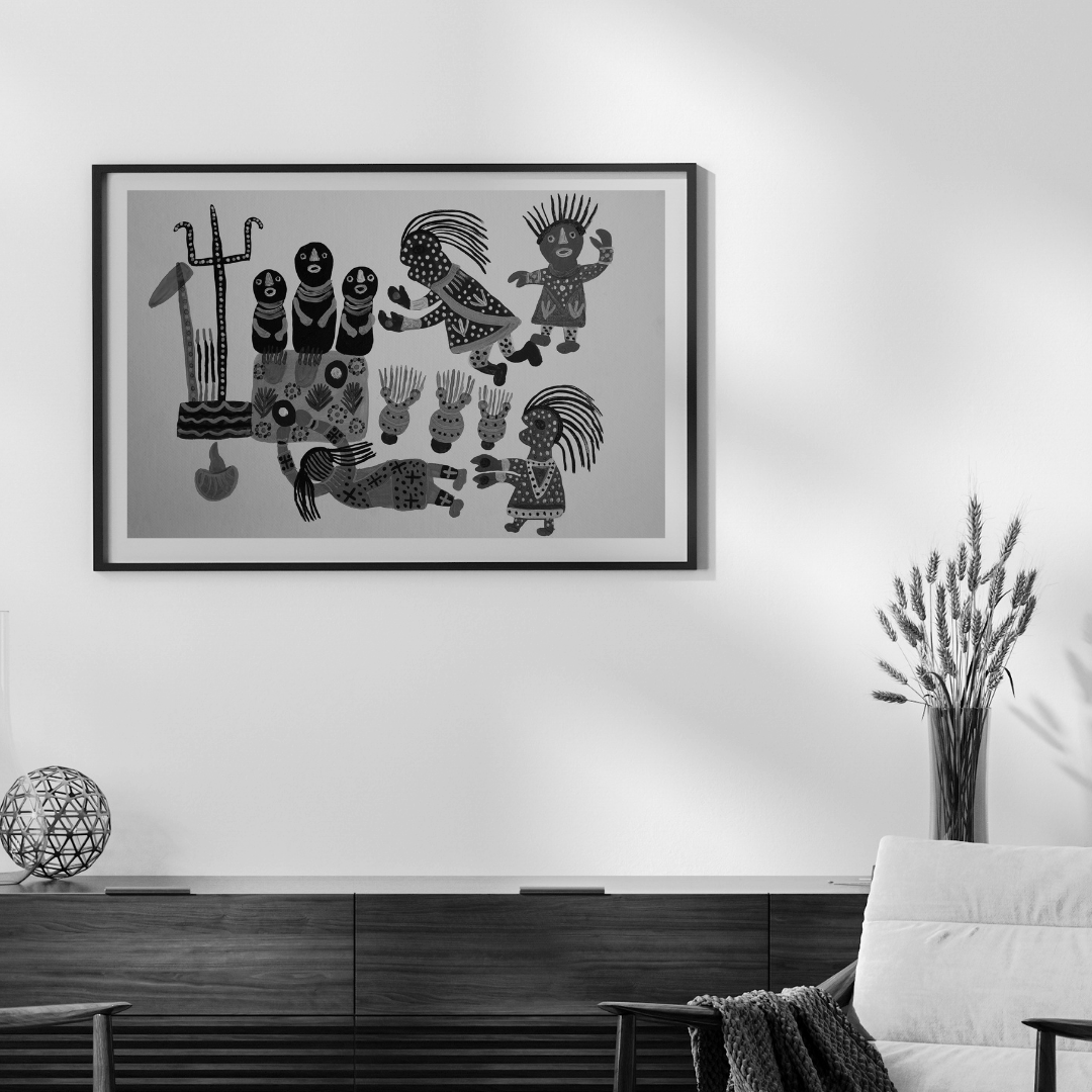 Baiga paintings are usually unframed but can be framed for display and protection if desired.