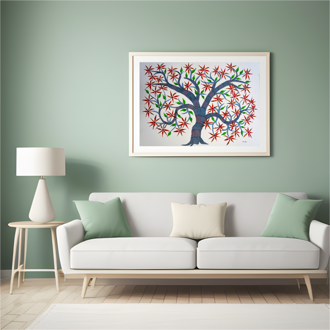 Baiga paintings are usually unframed but can be framed for display and protection if desired.