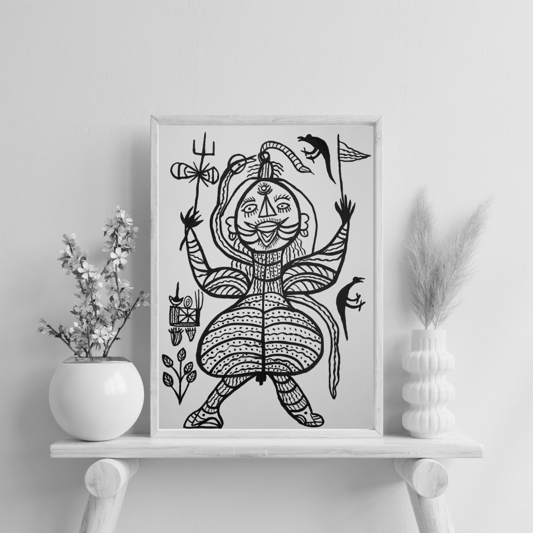 The painting used to enhance the divine imagery by creating a sense of open and focus around the central figure of Lord Shiva. The empty space emphasizes his presence, highlighting his spiritual significance and giving the composition a serene, contemplative quality that reinforces the divine essence.