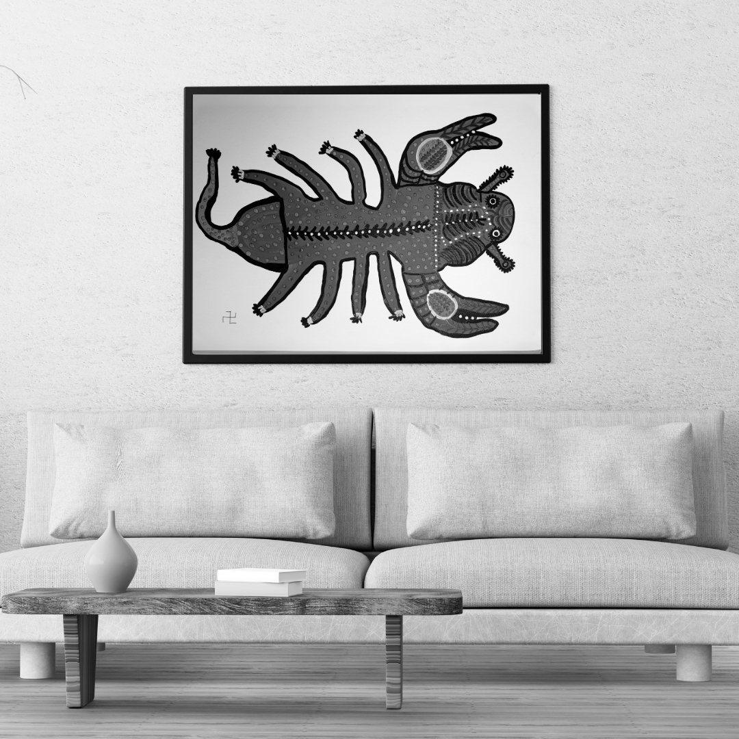 The choice of a scorpion as the subject is particularly fitting within the Baiga artistic tradition, as the Baiga people often draw inspiration from their natural surroundings and the symbolic significance of various creatures. The scorpion may represent strength, protection, and survival, themes that align with the Baiga people's deep connection to the forests and the animals within them. The intricate patterns and vivid colors in the artwork are not only aesthetic choices but also carry spiritual meanings, with each detail symbolizing various aspects of nature and life. By choosing the scorpion, the artist might be honoring the balance of nature, where even a dangerous creature like the scorpion holds a place of respect and significance.