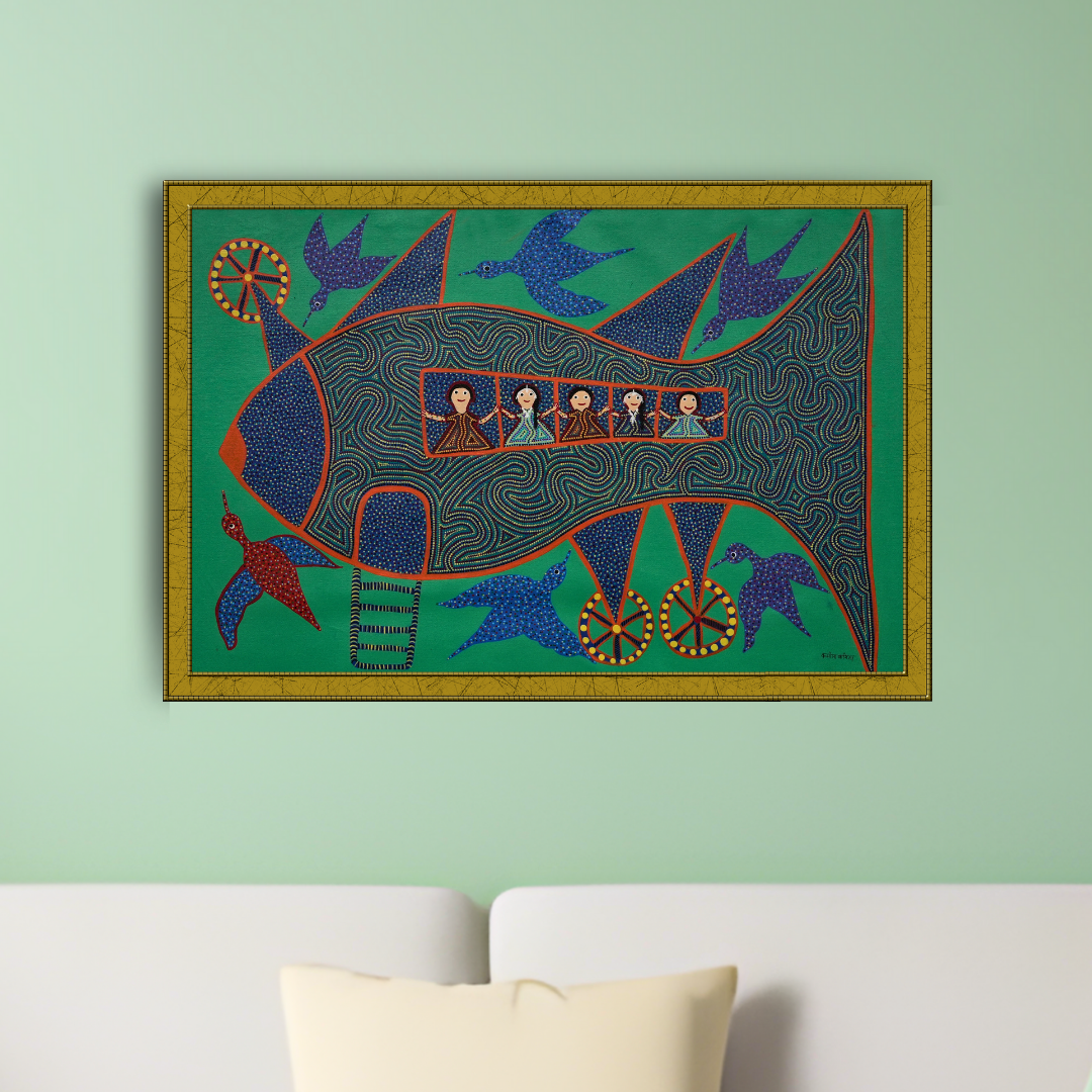 Original Indian Paintings: An authentic, 100% hand-painted Bhil tribal artwork that blends tradition with imagination.