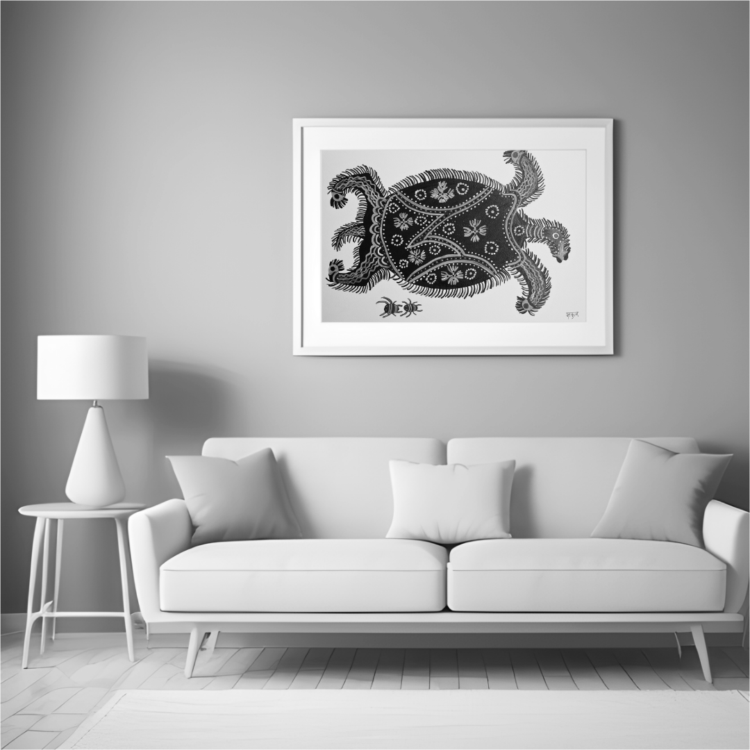 Baiga paintings are usually unframed but can be framed for display and protection if desired.