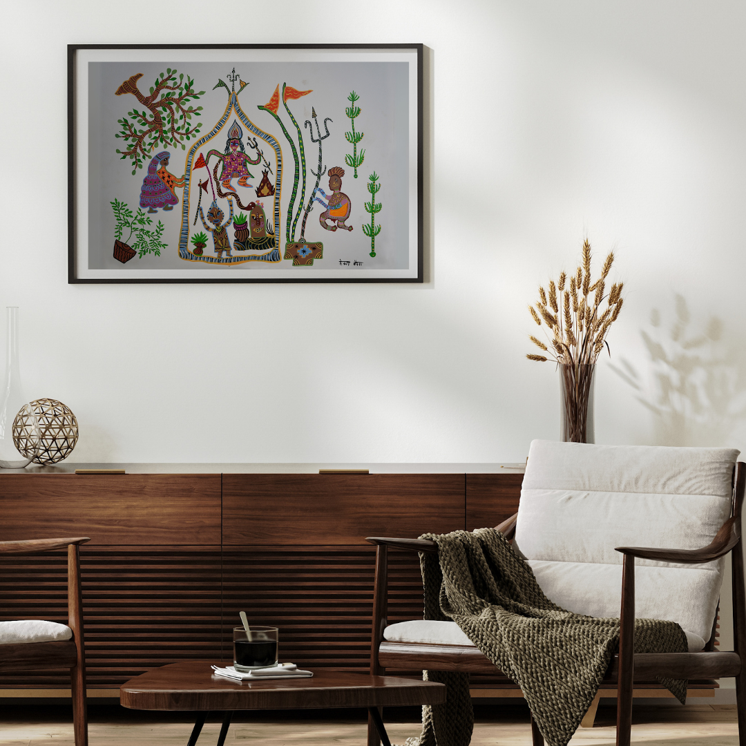 Baiga paintings are usually unframed but can be framed for display and protection if desired.