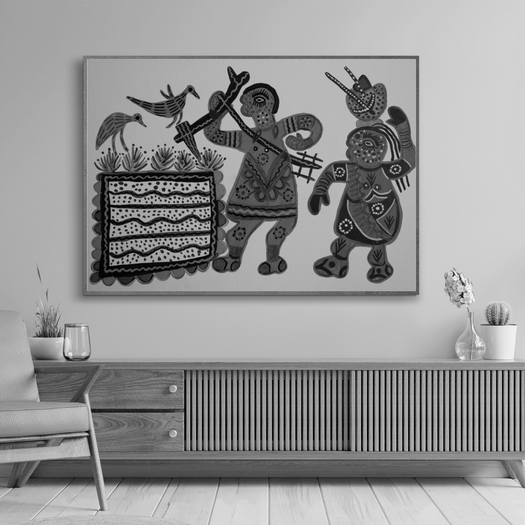 Baiga paintings are usually unframed but can be framed for display and protection if desired.
