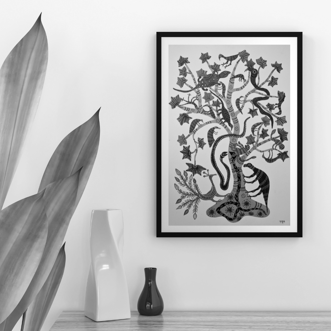 Celebrate the harmony of nature and tradition, bring home this stunning Baiga art masterpiece today!