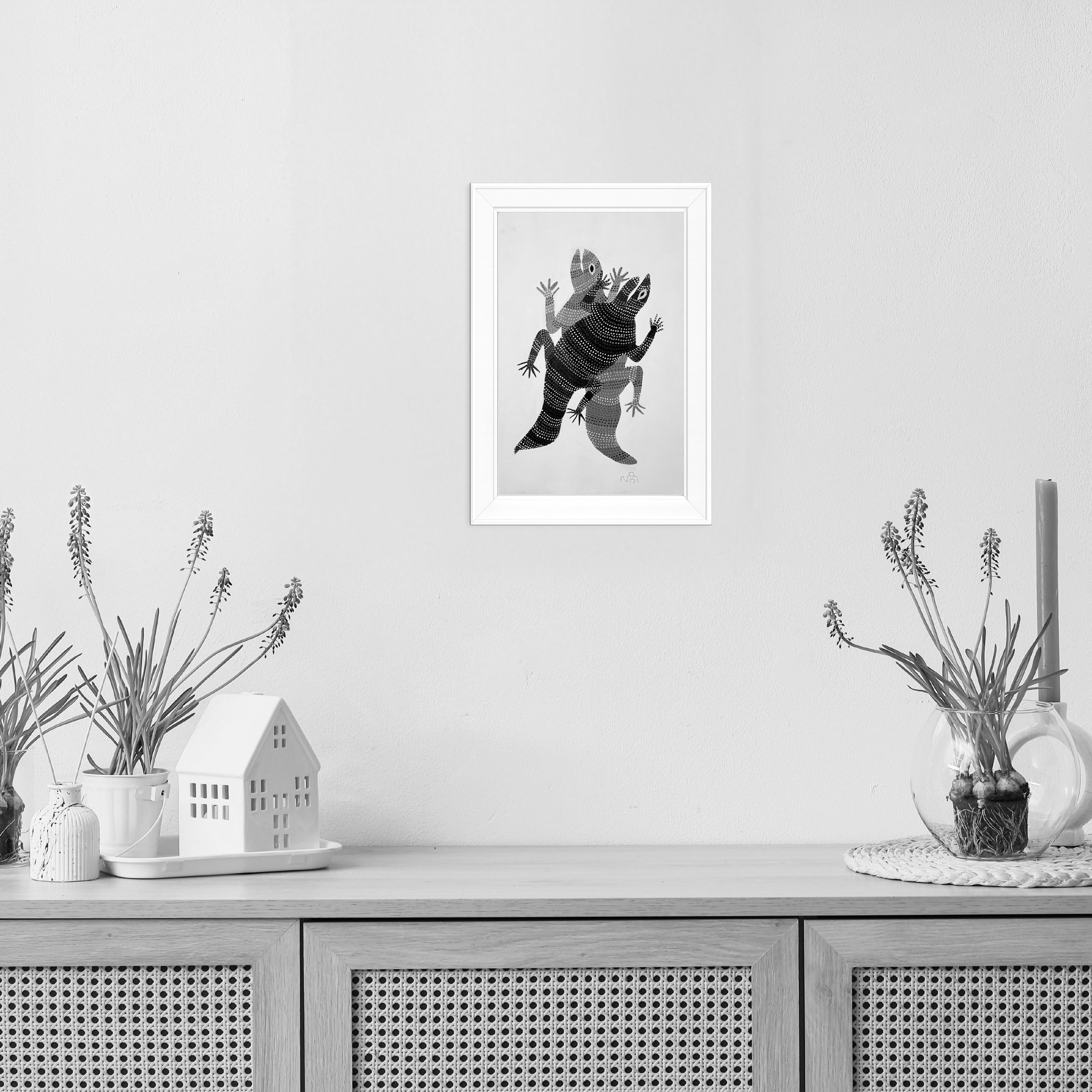 - The intertwined dual-lizard composition creates a powerful sense of movement and energy, rendered at a scale that commands attention on any wall.