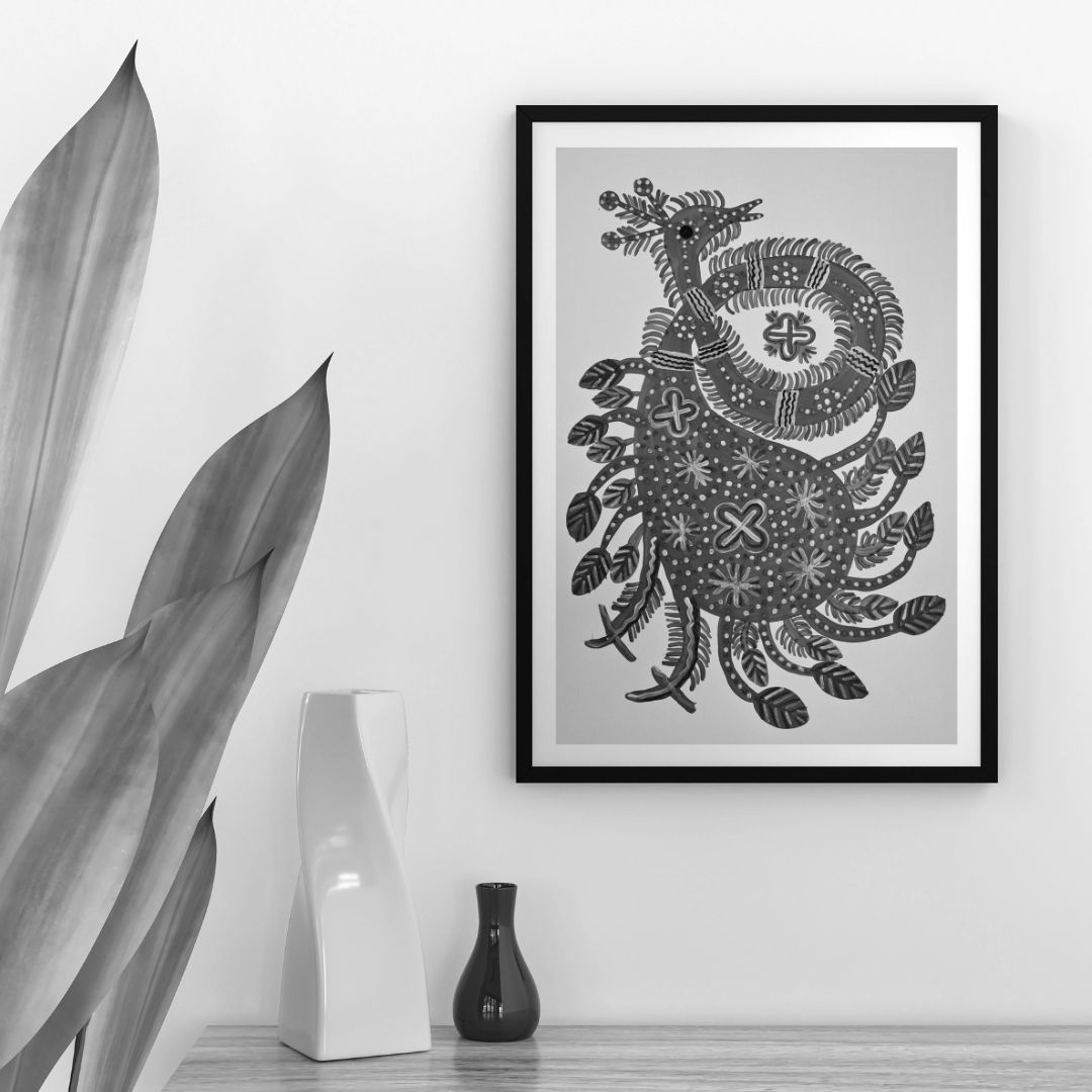 Baiga paintings are usually unframed but can be framed for display and protection if desired.